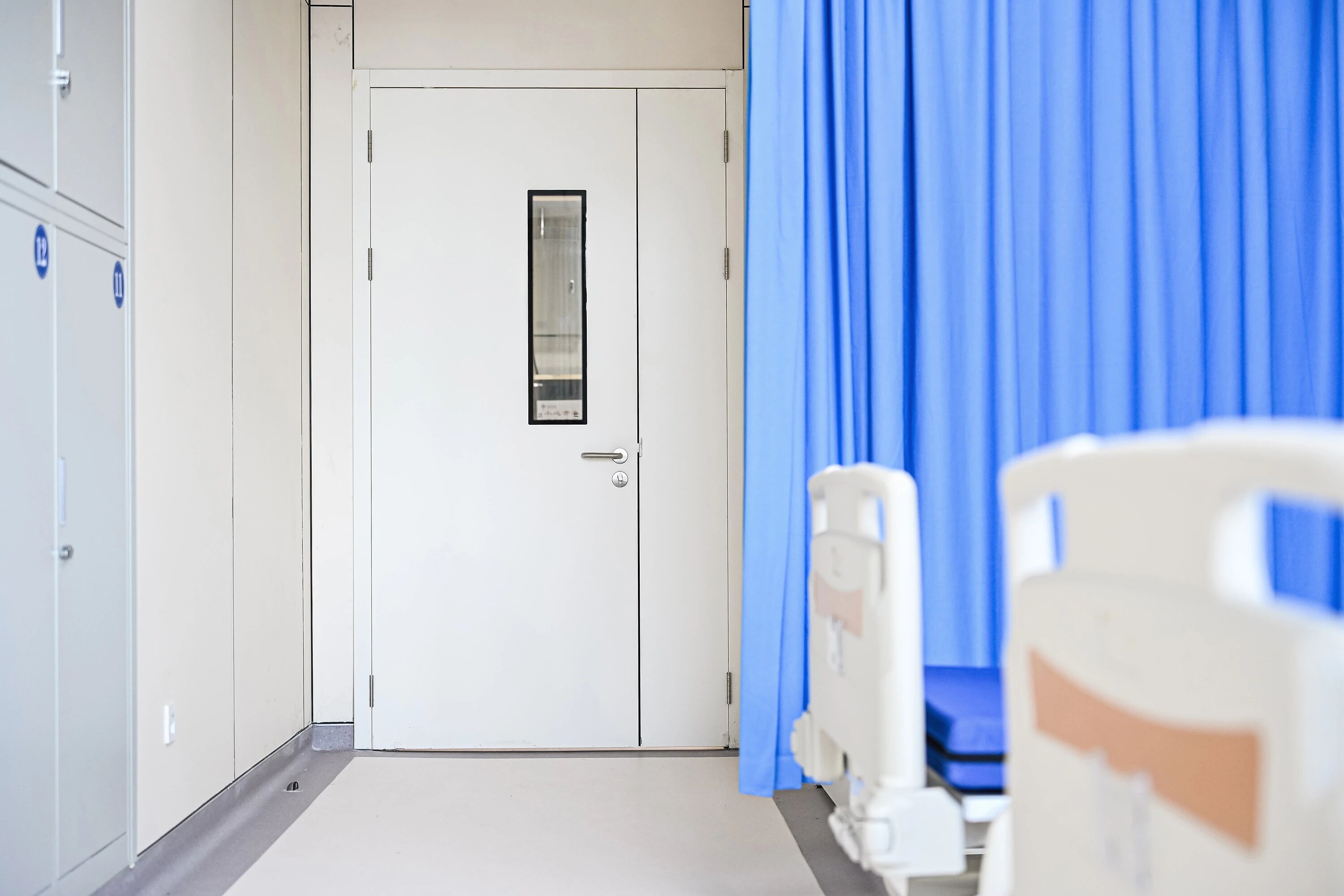 1、安全:防火抗菌板门不会因为开关门而影响他人的行动,可以避免医院里很多行动不便的人被各种设备或设施妨碍行动而引发事故;
